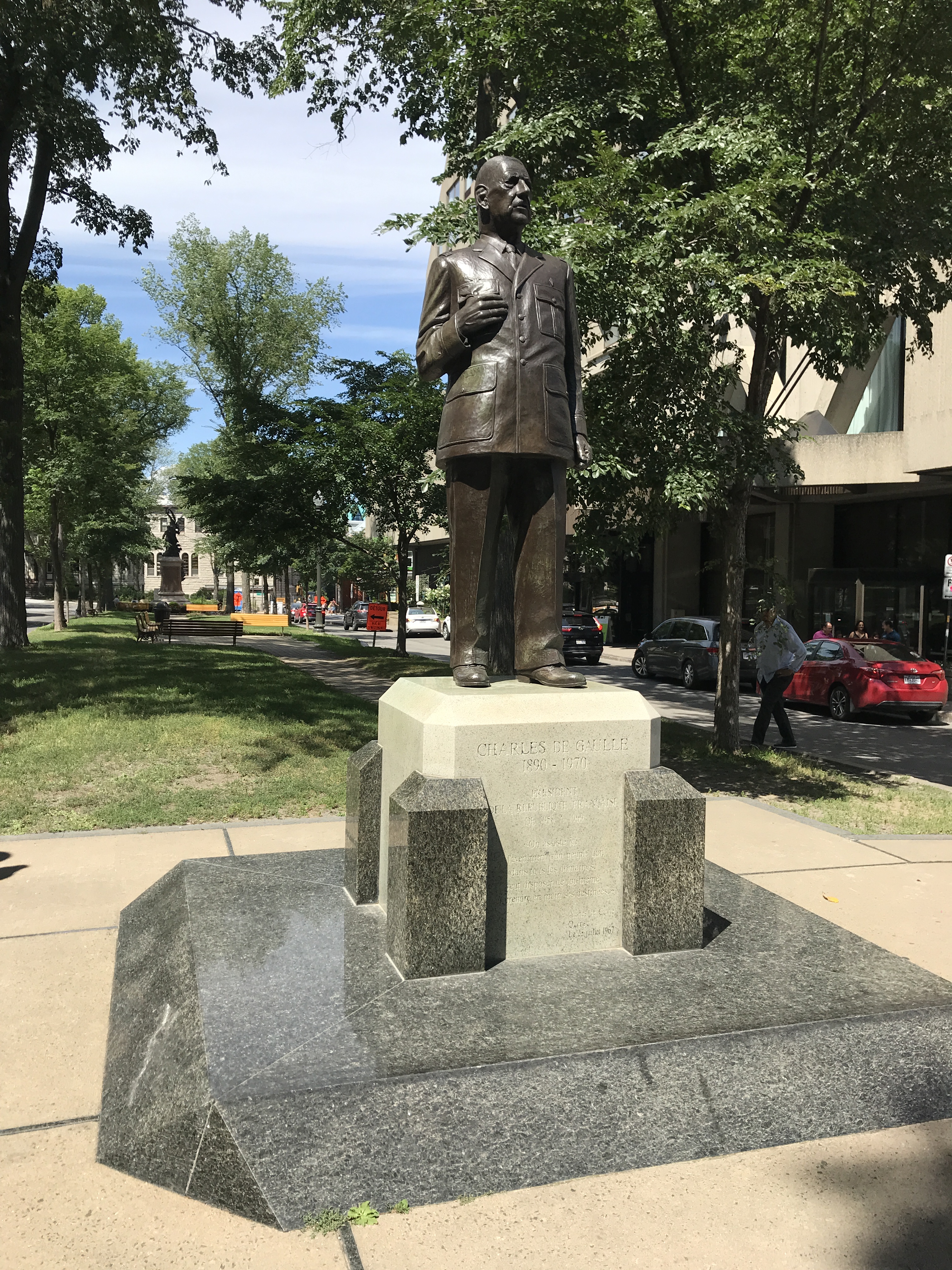 Face aux plaines d’Abraham se trouve une statue de Charles de Gaulle en l’honneur de sa venue au Québec en 1967.
