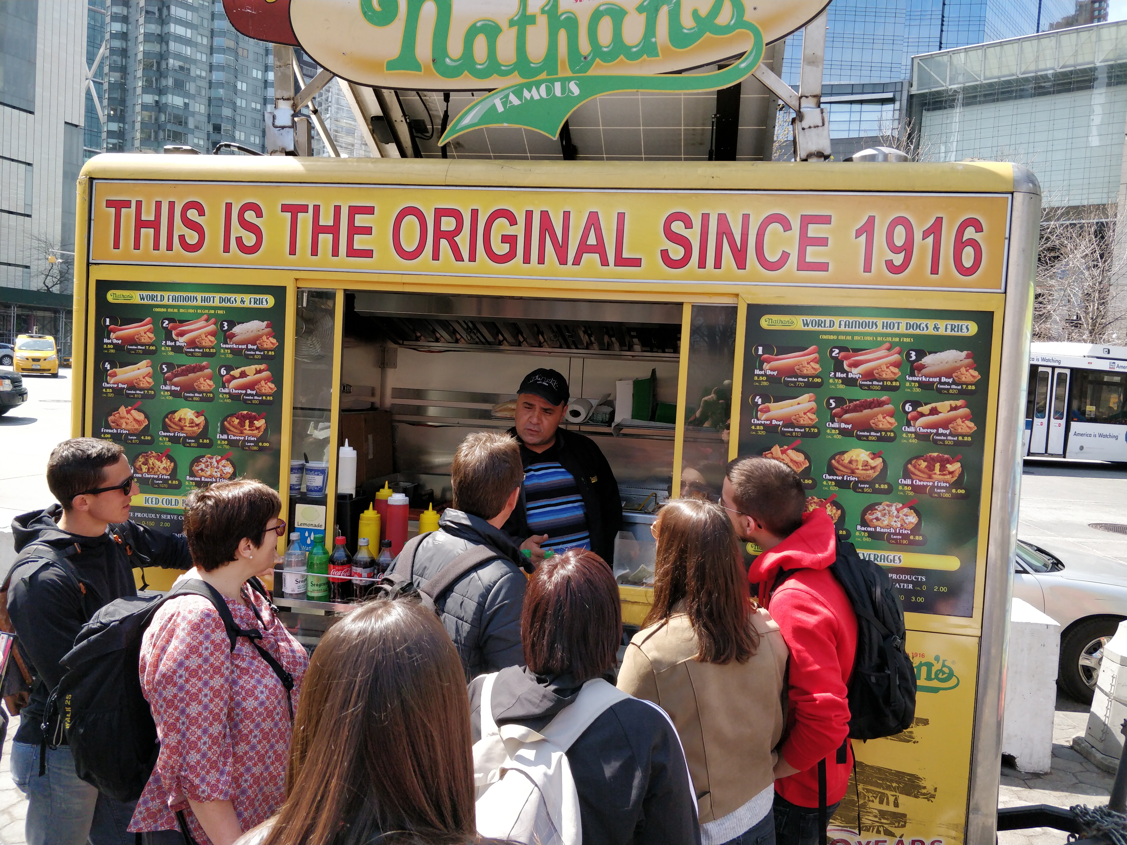 Avant de commencer la balade en vélo, nous mangeons la célèbre street food new-yorkaise : le Hot-Dog.