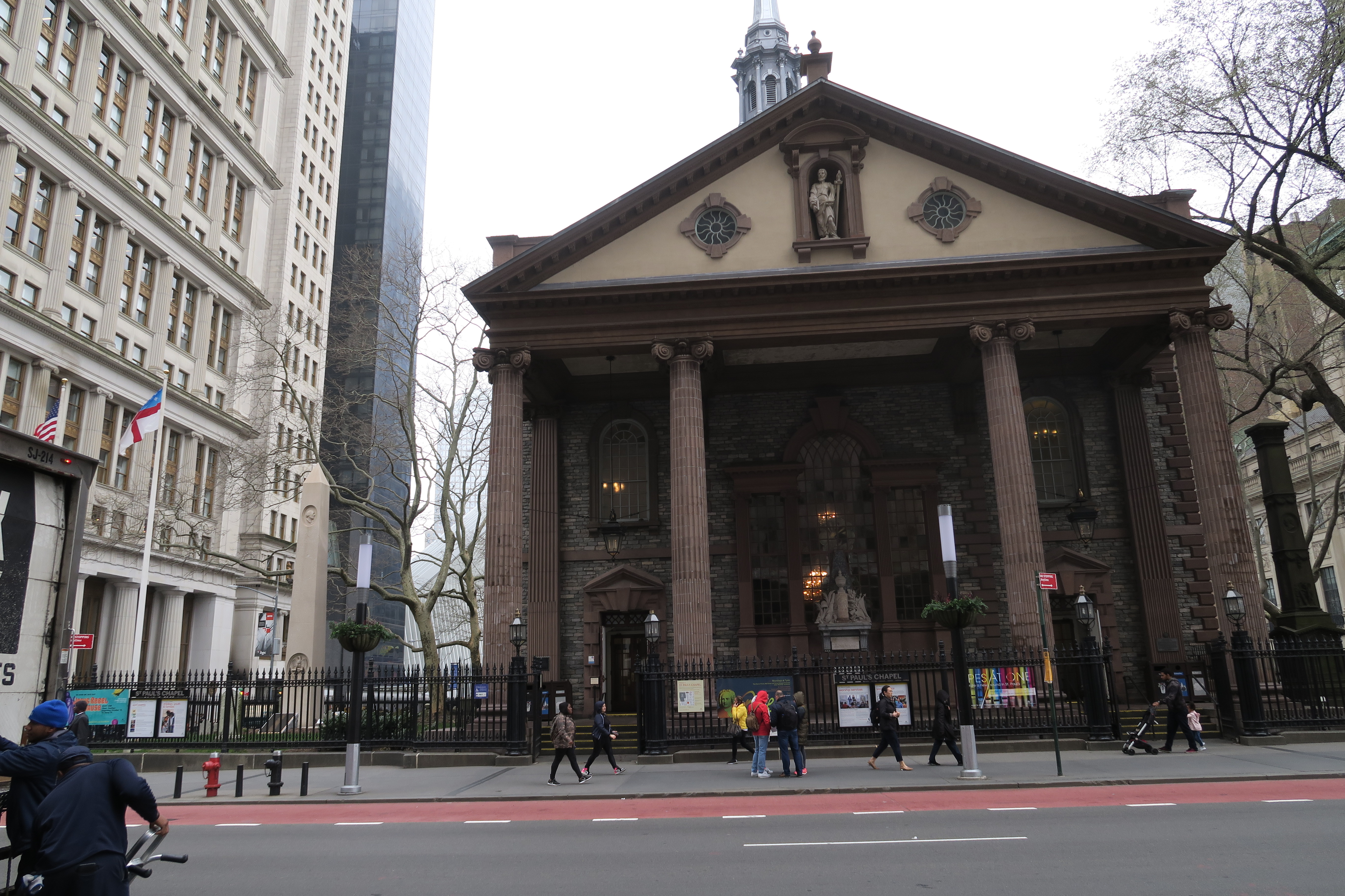 Juste à coté de Ground Zero et entre tous les buildings se trouve la mignonne petite chapelle Saint-Paul et son cimetière construit en 1766. Lors de l’attentat du 11 septembre du World Trade Center, elle subit peu de dégâts et fut un endroit de repos pour les secours.