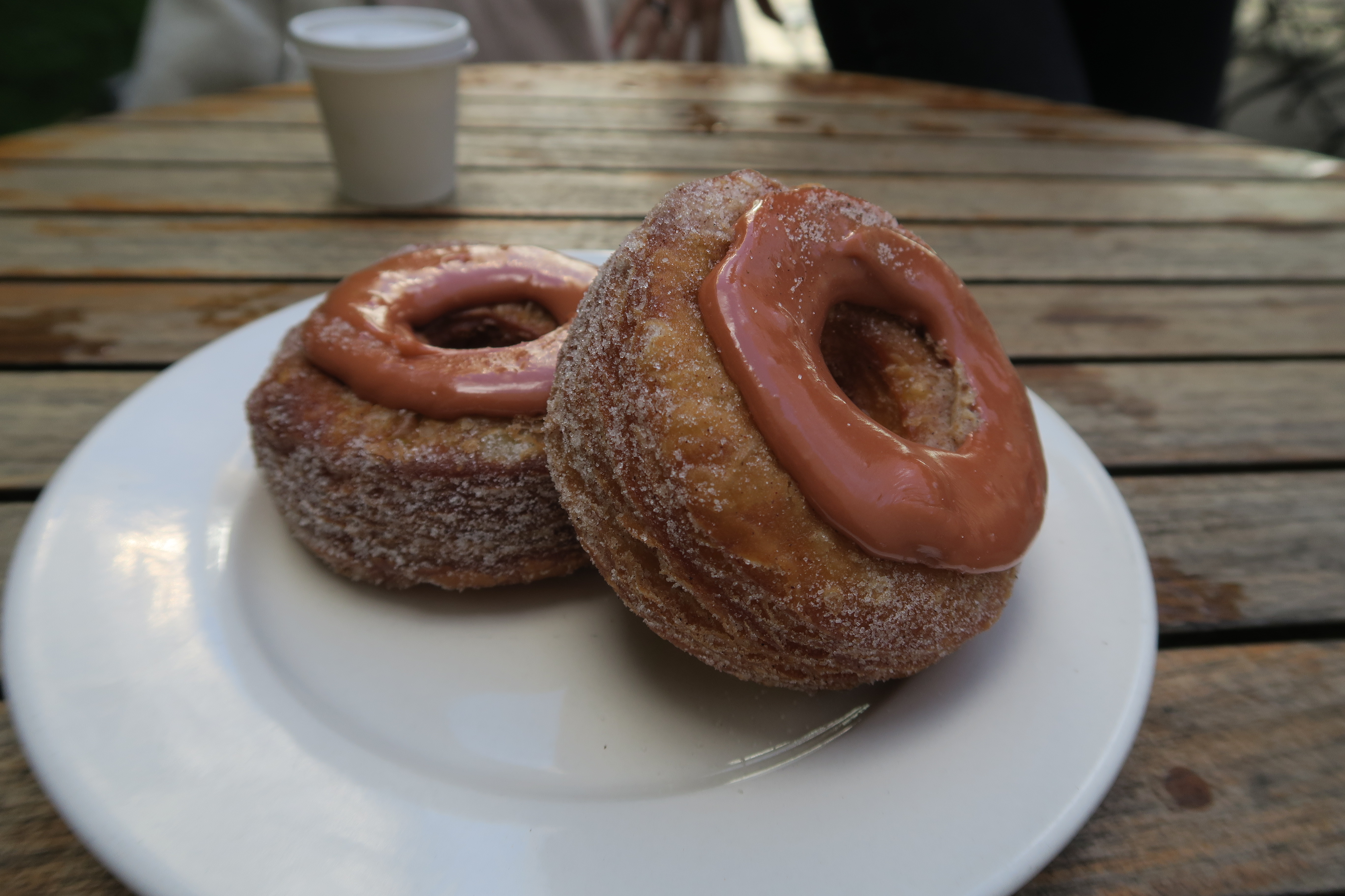 Nous revenons donc le lendemain matin plus déterminés que jamais pour enfin goutter à cette formidable invention. Après avoir fait face aux photographes d’Instagram se concentrant plus sur leurs photos que sur le goût, les 15min d’attente et les 6 dollars déboursés, nous avons enfin le Cronuts entre nos mains.