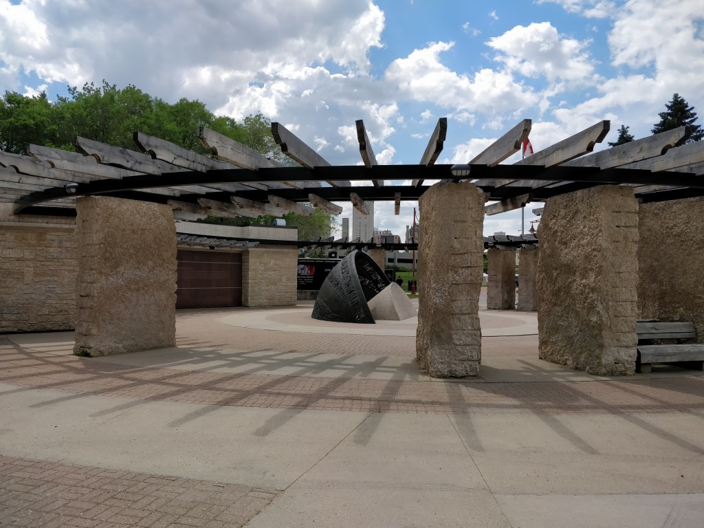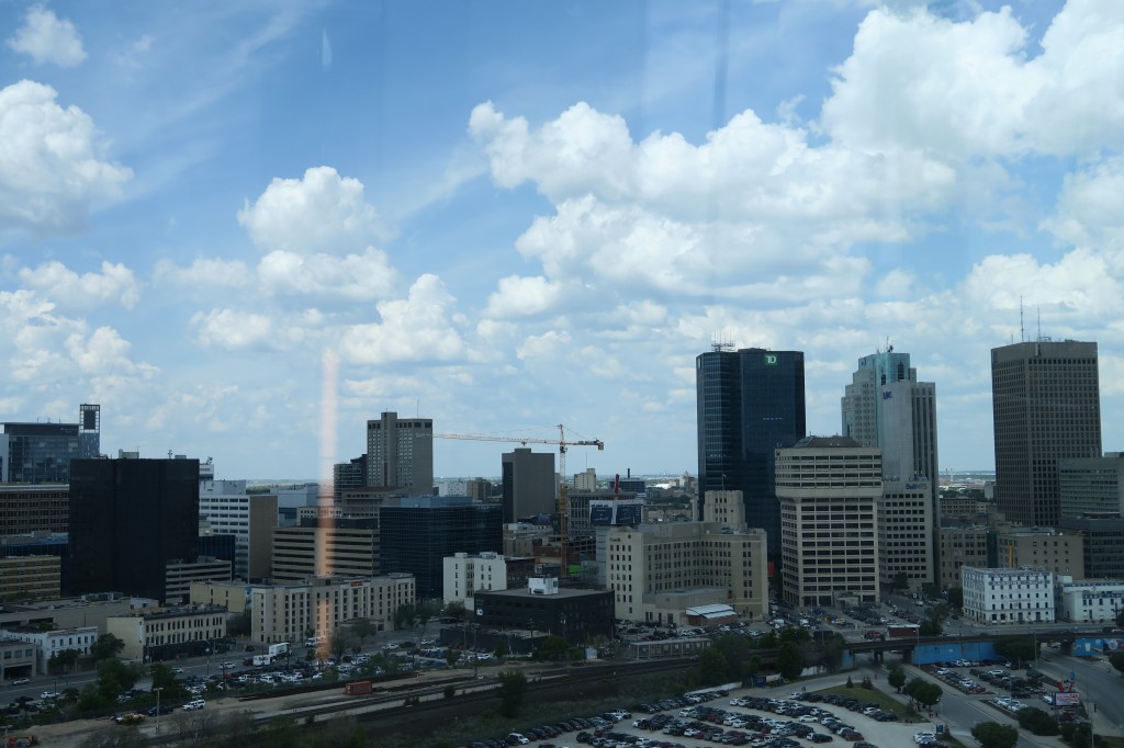 Au sommet du musée, je profite d’une vue magnifique sur la ville de Winnipeg.