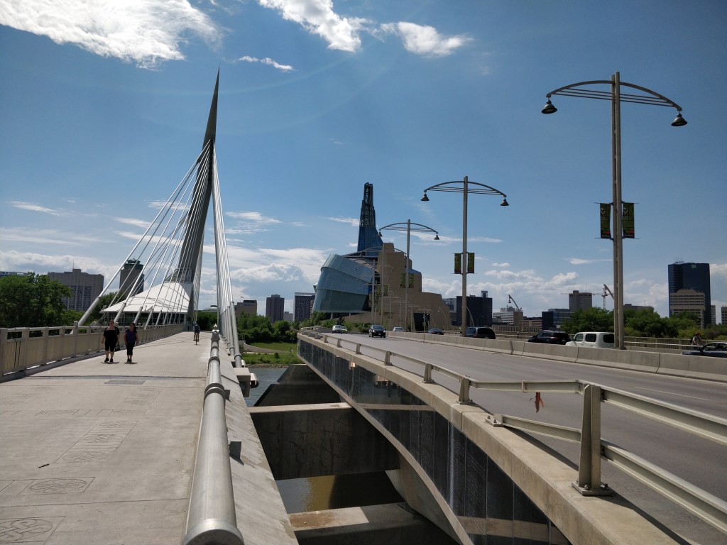 Pour rejoindre le quartier francophone de Saint-Boniface, il faut emprunter l’Esplanade Riel. Une fois le pont traversé, tout devient francophone !