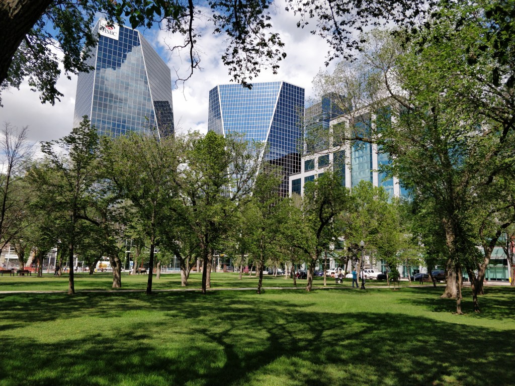 Le point central du centre-ville est le parc Victoria, situé au pied des quelques gratte-ciels. Un joli parc urbain qui se démarque, alors que le reste du centre-ville est assez peu animé pour les visiteurs. Je me suis également baladé dans la Scarth Street, une zone piétonne commerciale attenante au parc Victoria.