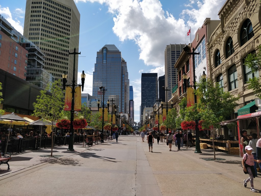 Je poursuis ma visite en empruntant la Stephen Avenue Walk, une rue piétonne très animée, idéale pour flâner et boire un verre dans l’un des nombreux bars. La rue a un charme particulier : les bâtiments anciens se mêlent harmonieusement aux constructions modernes du centre-ville, créant un contraste très agréable.