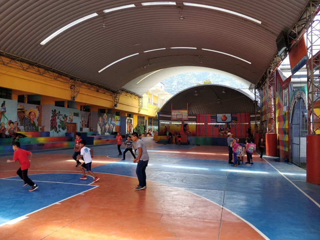 L’endroit le plus animé et occupé par les locaux est situé au centre-ville et plus précisément au terrain de basket. Ce terrain est entouré de fresques représentant l’histoire des peuples maya.