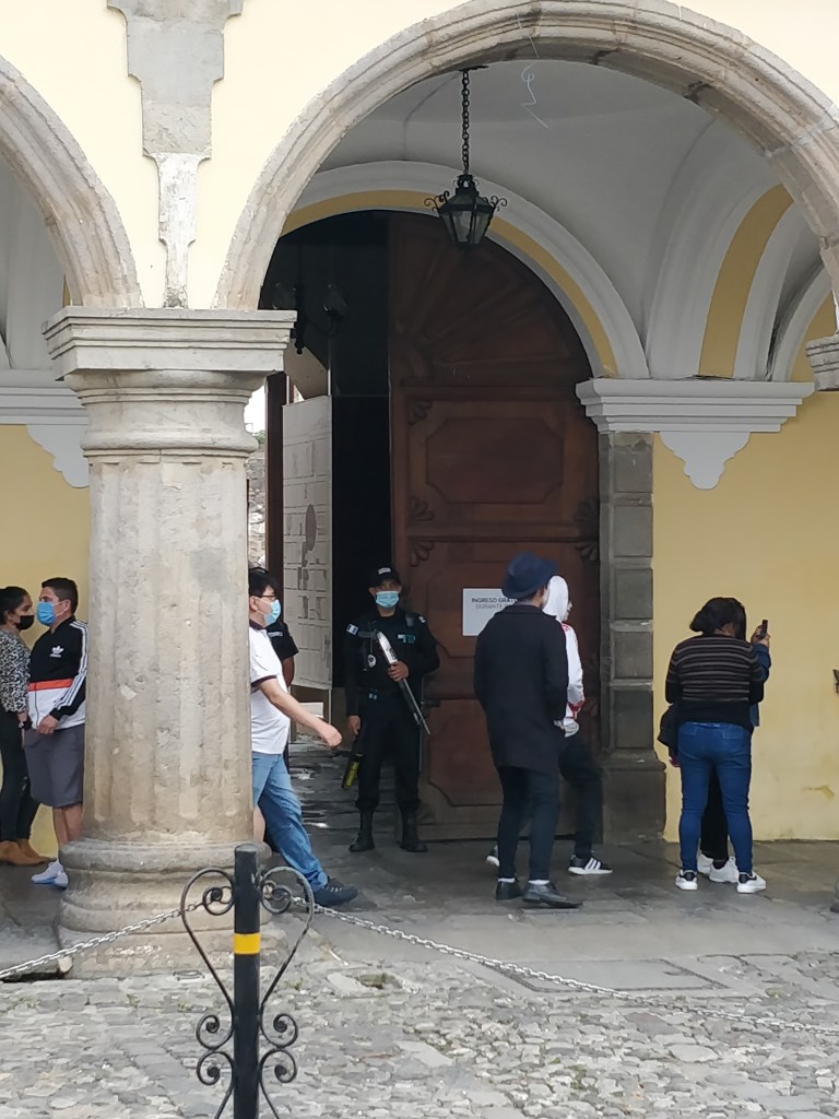 Comme partout au Guatemala, les bâtiments sont bien gardés.