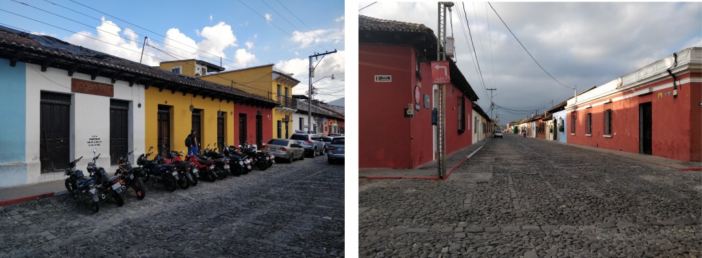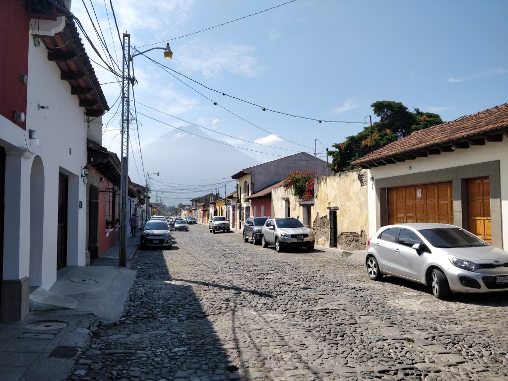 Antigua est une ville où les habitations ne dépassent jamais plus d’un étage. Les rues sont quadrillées de pavées et sont très colorées. L’ancienne capitale a beaucoup de charme.