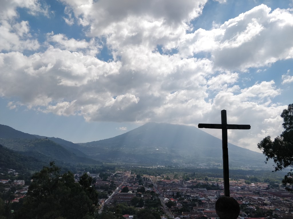 Plus tard dans la matinée nous rejoignons El Cerro de la Cruz. Situé dans les hauteurs, c’est le meilleur point de vue sur la ville et du Volcan Agua. Nous nous y sommes rendus en tuktuk mais c’est facile d’accès à pieds.
