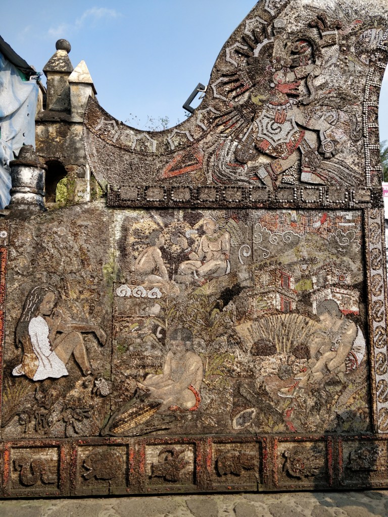 A l’entrée, une fresque symbolisant l’histoire précolombienne, élaborée avec 60 variétés de graines !