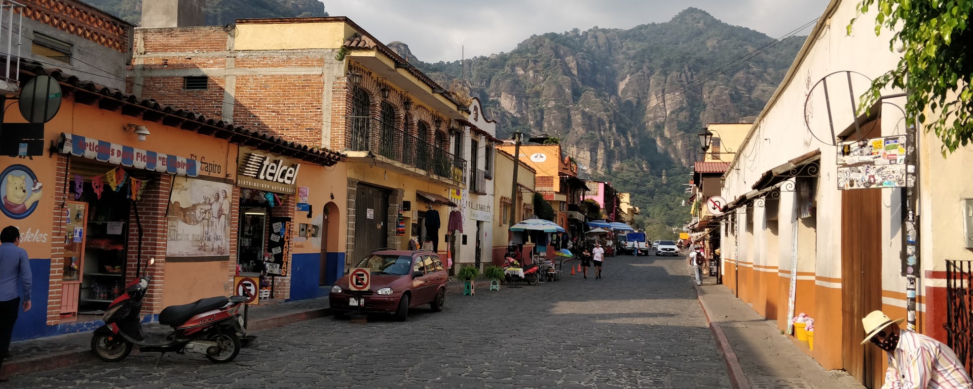 Depuis l’Avenida de Tepozteco, on remarque les hautes falaises qui entourent la ville.