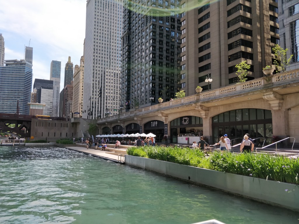 La première chose à faire est de prendre le métro aérien (Le Loop) pour se rendre jusqu’à la promenade fluviale de la Riverwalk.