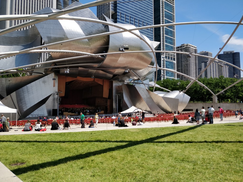 L’Est de Chicago est bordé par de nombreux parcs et espaces verts. Le plus connu est celui situé au centre ville, le Millennium Park. Conçu pour l’entrée dans le 2ème millénaire, il accueille un amphithéâtre en plein air. D’ailleurs, quand nous y étions, un concert de philharmonie y était joué !