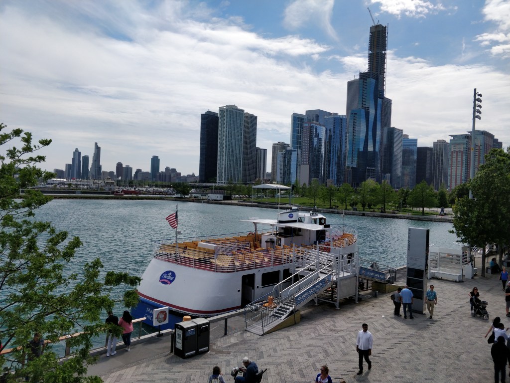 Nous continuons à pied jusqu’à Navy Pier. Un ancien quai militaire reconverti en un lieu de divertissements et d’attractions. Elle offre une vue imprenable sur la partie de la Skyline.