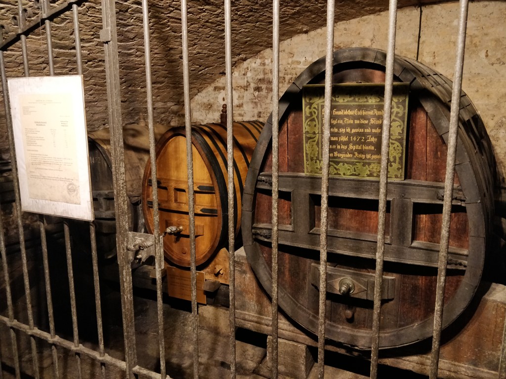 La cave historique des hospices civile fait place dans sa voute de 1200m² une multitude de tonneaux. Témoin de l’histoire du vin dans les infrastructures hospitalière de la ville. Un tonneau plus récent contient le même vin de 1472 !