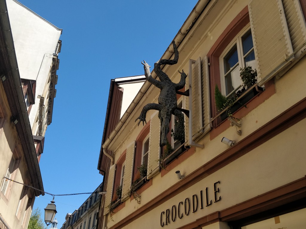 Ramené d’Egypte il y a plus de deux siècles par l’officier Ackermann, il fut l’aide de camp du général Kléber lors de la campagne d’Egypte. Cet officier a capturé la bête au bord du Nil puis le fit empailler. Lors de son retour dans la capitale alsacienne il acheta l’auberge située au 10 rue de l’Outre et y a accroché son trophée de chasse.