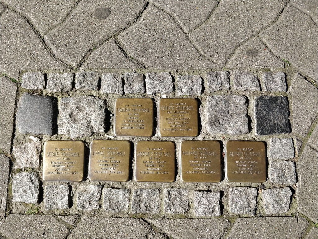 Ces petits monuments commémoratifs rendent hommage aux victimes de la Shoah. Ils ont pour but d’indiquer la dernière résidence des anciens habitant-es des lieux qui furent déporté-es et tué-es dans les camps de la Seconde Guerre Mondiale.