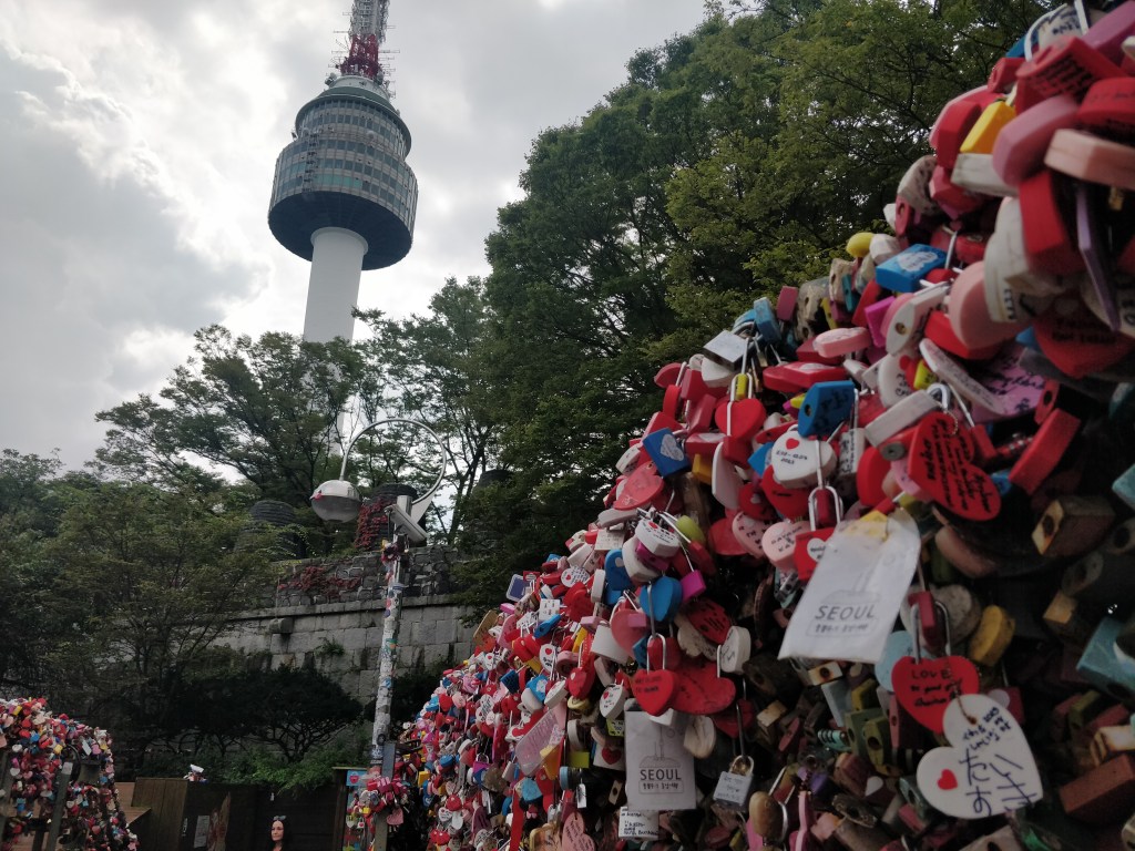 Pour y accéder, nous montons jusqu’au sommet de la colline via un téléphérique offrant une vue panoramique (Namsan Cable Car). Le trajet dure 3 minutes pour un coût de 11 000 W par adulte.