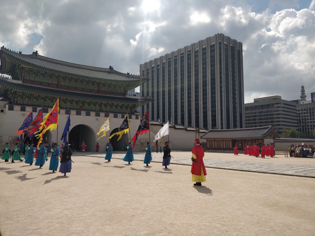Assistez à la relève de la garde à 10h et à 14h dans la cour de la porte Gwanghwamun. Essayez d’arriver 10 minutes avant pour avoir une bonne place pendant les 20 minutes du spectacle.