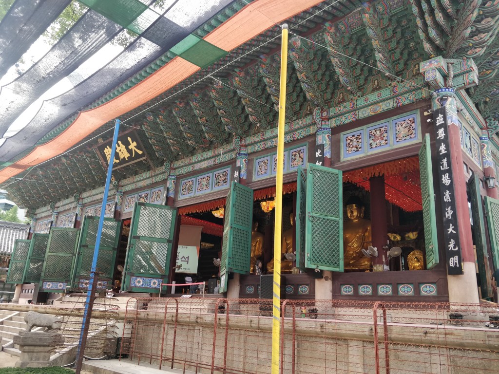 Ensuite, nous nous rendons non loin du palais, au temple Jogyesa. Fondé en 1395, c’est un temple bouddhiste zen en Corée qui a la particularité d’être situé en plein centre-ville de Séoul.