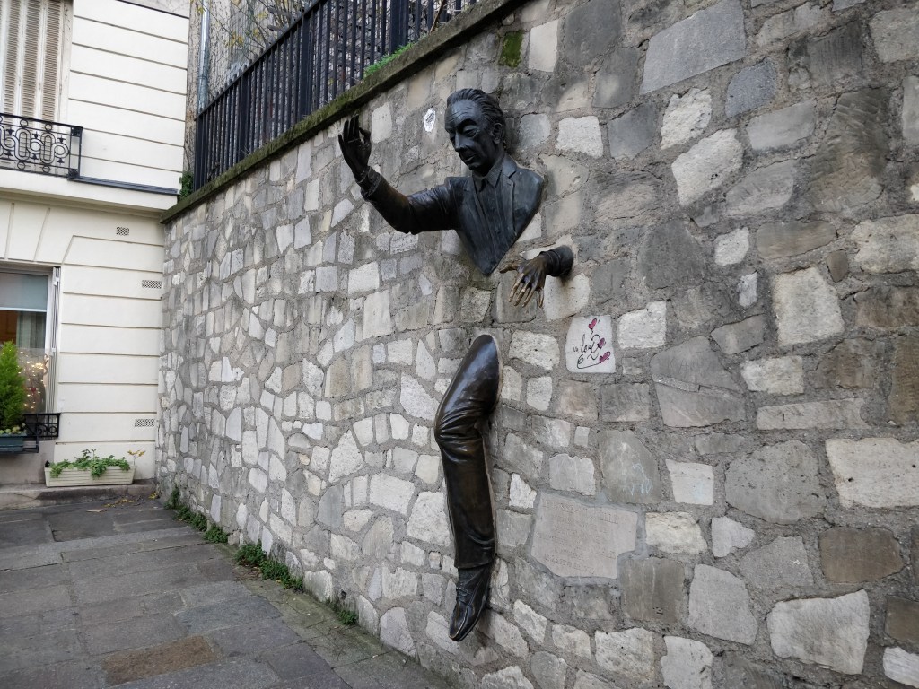 Cette statue grandeur nature du Passe-Muraille traversant un mur a été créée par Jean Marais. Elle est installée sur la placette où vécut Marcel Aymé et rend hommage au héros montmartrois de sa célèbre nouvelle.