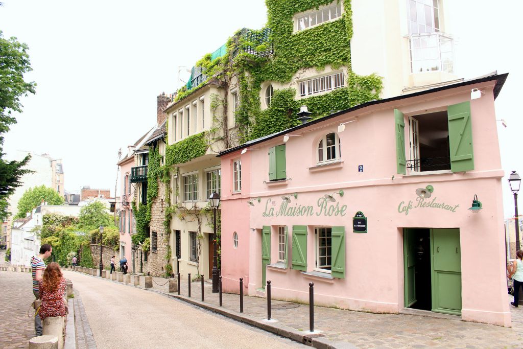 À l’angle de la rue des Saules et de l‘Abreuvoir se trouve La Maison Rose. Cette jolie maisonnette rose aux volets verts fait partie des lieux insolites de la butte Montmartre. Son charme pittoresque, autrefois fréquentée par de nombreux artistes, attire tous les regards. Ayant visité l’endroit en hiver, mes photos ne me plaisent pas, donc je vous montre l’endroit sous un meilleur jour.